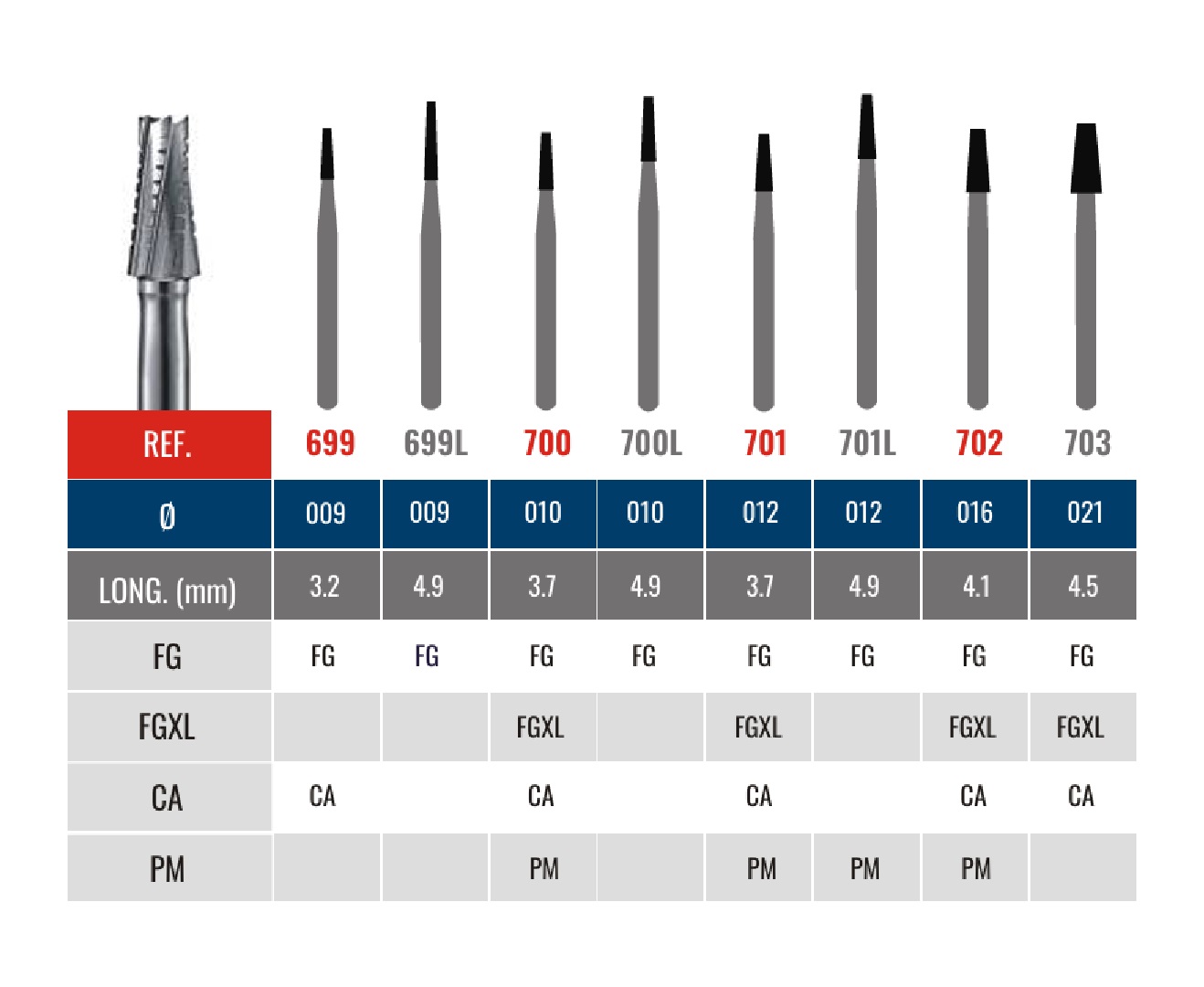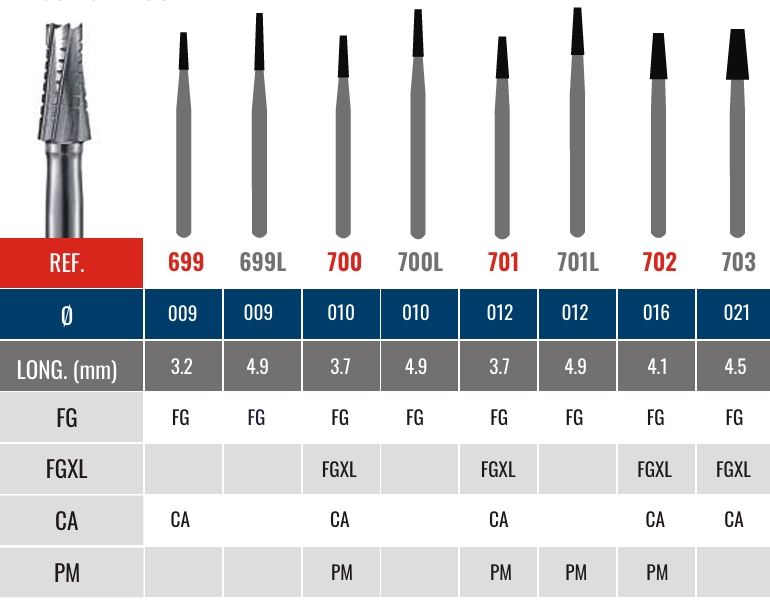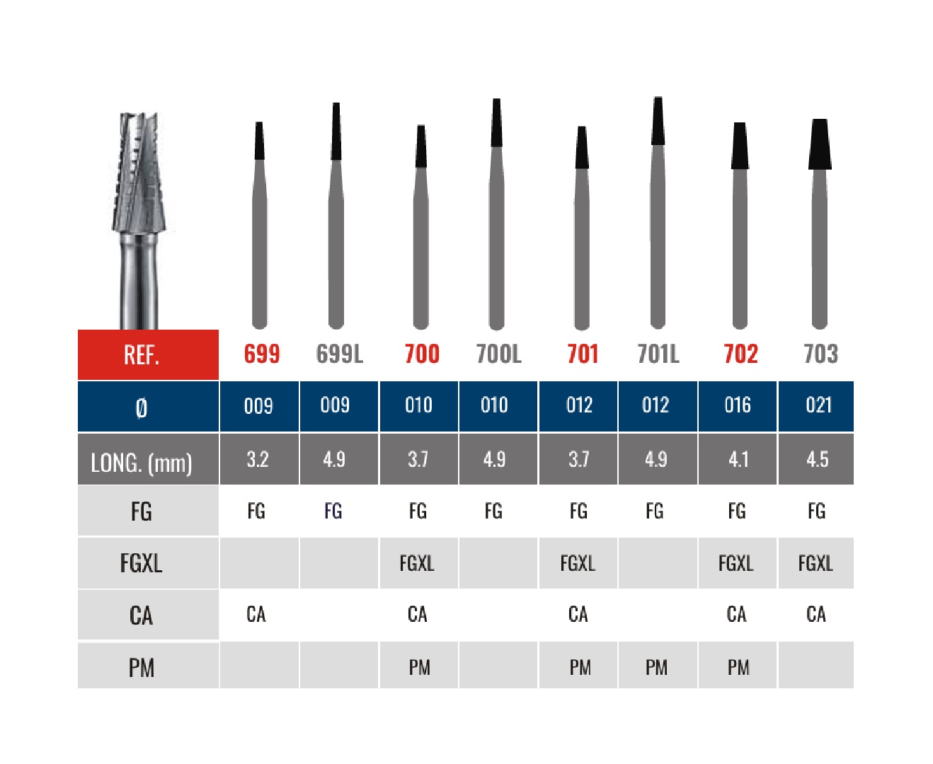 FRESA CARBURO CIRUGIA FGXL 700 TRONCOCONICA DENTADA X UNID JET