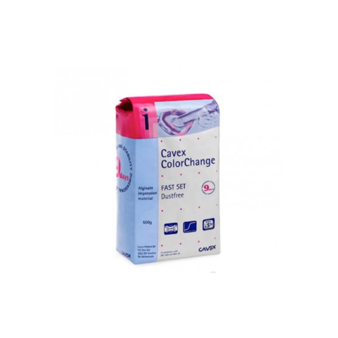 Este alginato de fraguado rápido, tiene un sistema de cambio de color funcional, es muy elástico, resistente a la rotura y cuenta con una impresionante reproducción de detalles de nada menos que 25um. Gracias a su inigualable equilibrio, este alginato único y moderno tiene una estabilidad dimensional de al menos 9 días.