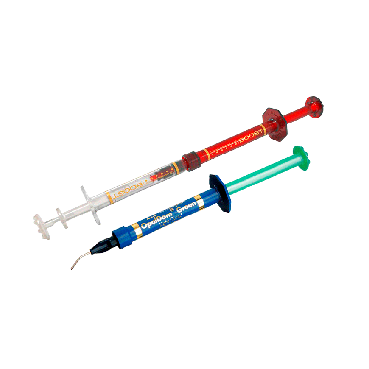 Presentación: 1 jeringa Opalescence Boost 40% x 1.2ml + 1 jeringa OpalDam Green + 3 puntas dispensadoras.