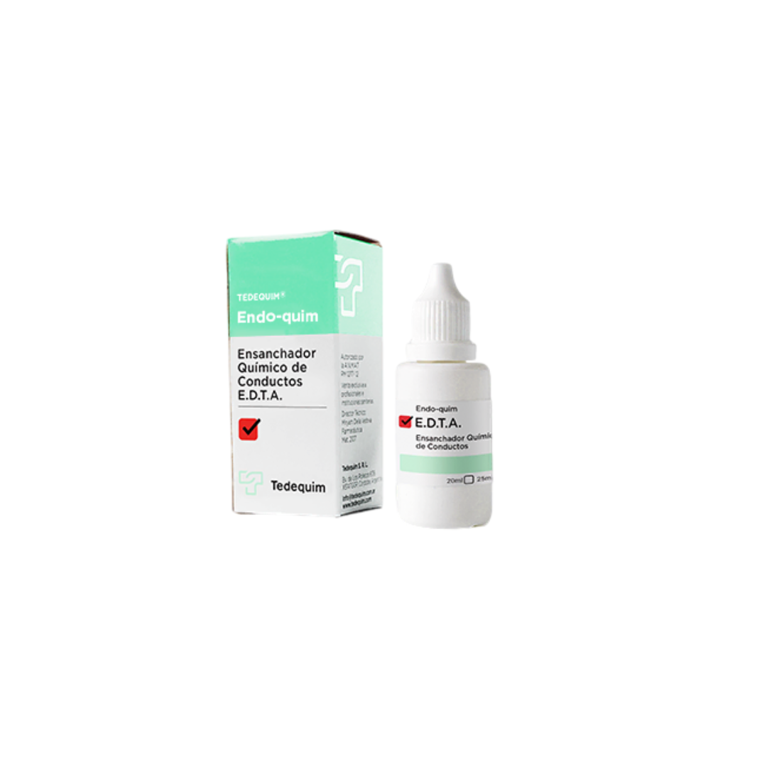 El Ensanchador químico de conductos E.D.T.A. 17%Endo-quim TEDEQUIM® es una solución de irrigación eficaz utilizada en elproceso de ensanchamiento de los conductos radiculares. Su principal objetivoes suavizar y facilitar la remoción del tejido orgánico y dentinario.permitiendo un tratamiento más efectivo y seguro.