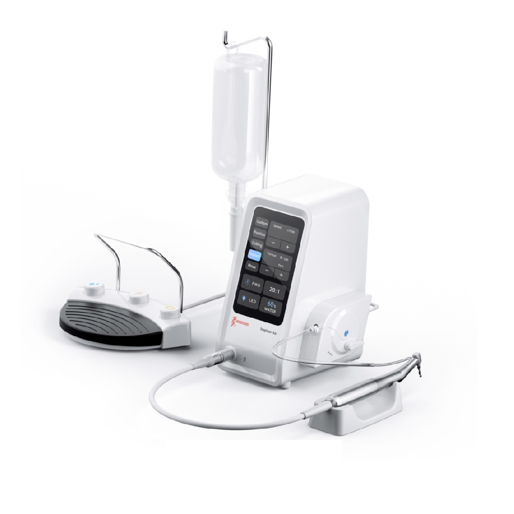 Implant Air es la versión más nueva y avanzada del fisiodispensador Woodpecker. Diseñado para que sea simple. preciso y confiable para la implantación.