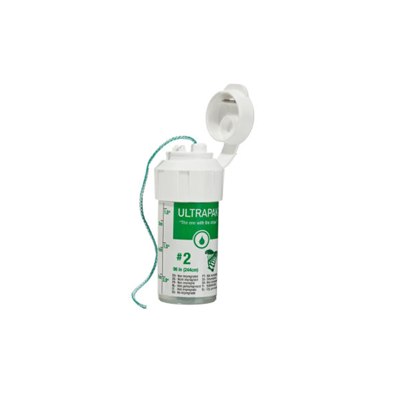 El hilo Ultrapak está fabricado 100% en algodón. tejido en miles de lazos diminutos para formar largas cadenas entrelazadas Este exclusivo diseño tejido ejerce una fuerza suave y continua hacia el exterior después de su colocación. ya que los lazos tejidos buscan expandirse. El desplazamiento óptimo de los tejidos ocurre en 1-3 minutos. Ultrapak E está impregnado en hidrocloruro de epinefrina racémica.