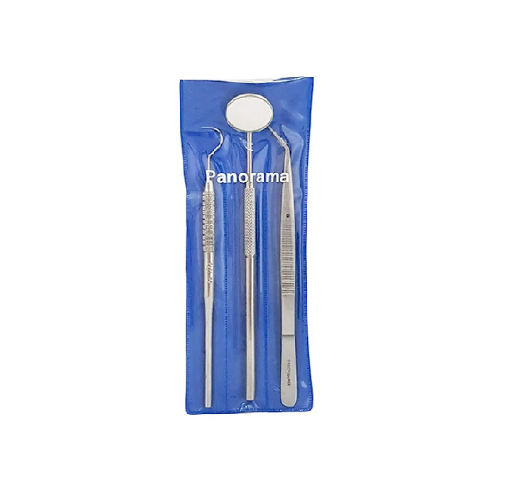 Juego clínico 1 espejo con mango + 1 pinza de algodón + 1 explorador.