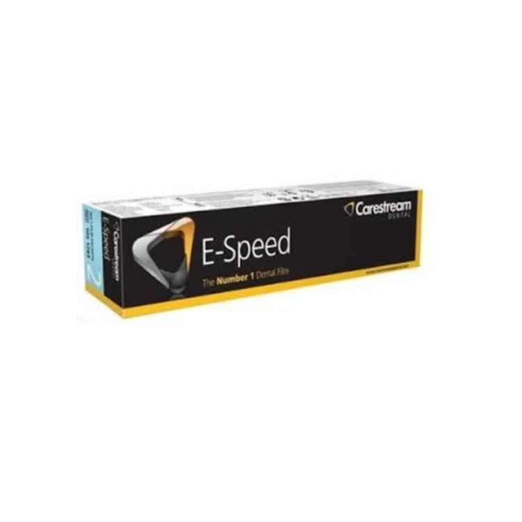 La película dental intraoral KODAK E-Speed ofrece imágenes de alta calidad en sólo la mitad del tiempo de exposición necesario para las películas intraorales tradicionales D-Speed.