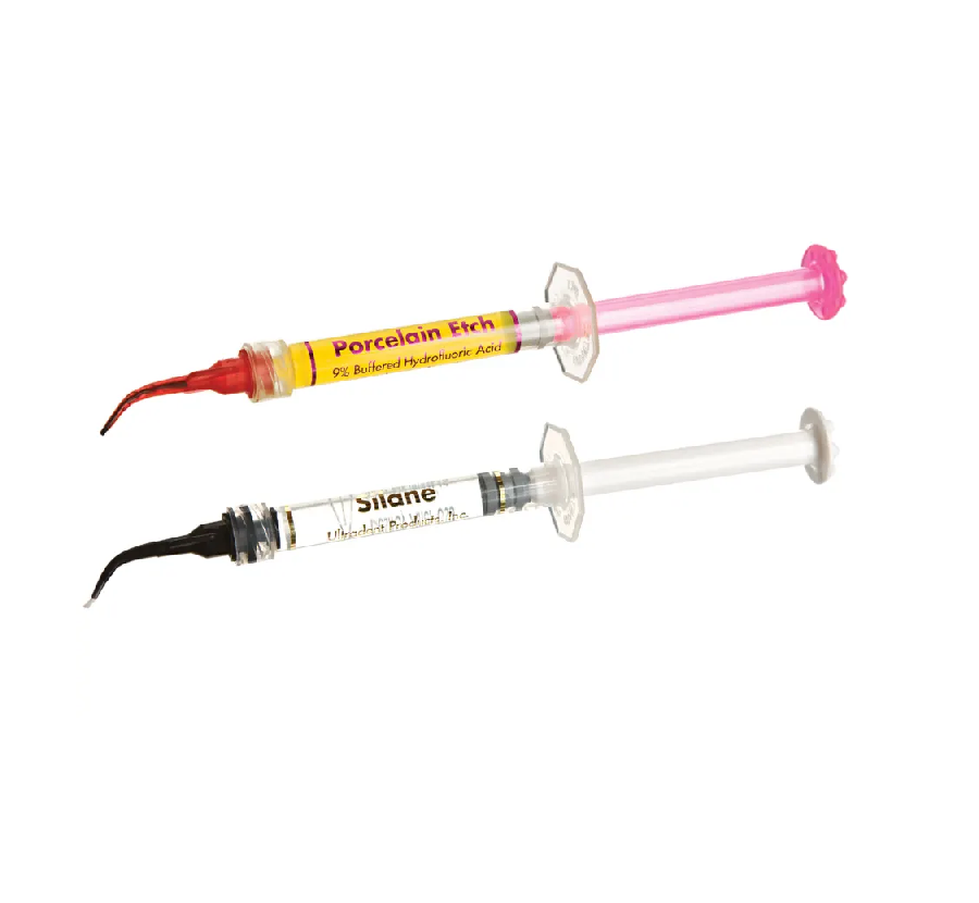 Use Porcelain Etch para el grabado de porcelana o de antiguas restauraciones de composite con macrorrelleno antes de realizar una adhesión y reparación intraoral.