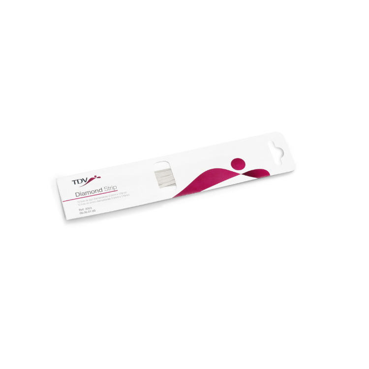 Diamond Strip es una tira de acero diamantada indicada en el acabamiento de restauraciones y stripping ortodóntico.